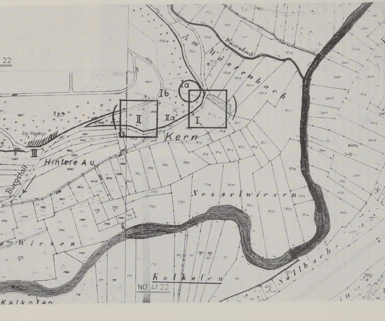 Die Fundstelle im Bereich „Kern“ zeigt Anzeichen römischer Besiedlung, wobei die genaue Lage und Ausdehnung der Gebäude noch nicht vollständig geklärt sind. Flurnamen wie „Kern“ und „Burgstall“ könnten auf alte Bauwerke hinweisen, möglicherweise sogar auf eine mittelalterliche Anlage.