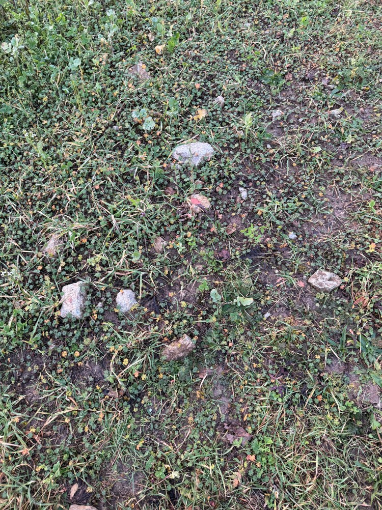 Vor Ort entsteht der Eindruck, auf einer leicht erhöhten, ebenen Plattform zu stehen – fast so, als handle es sich um die Überreste eines Gebäudes. Die Grenzen dieser Fläche sind klar erkennbar und wirken wie bewusst abgesteckt. In unmittelbarer Nähe finden sich zudem auffallend viele Steine, die sich jedoch rasch verlieren, sobald man sich von der vermuteten Struktur entfernt.