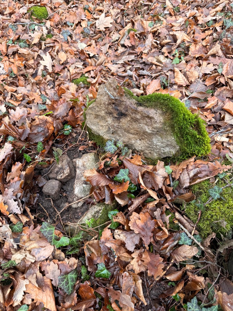 Sollte hier tatsächlich ein Teil eines römischen Gutshofes gestanden haben, so könnte er im Boden noch verhältnismäßig gut erhalten sein. Das dichte Moos und der üppige Bewuchs aus Efeu erschweren allerdings die Sicht auf mögliche Baureste wie Ziegel oder andere typische Baumaterialien.