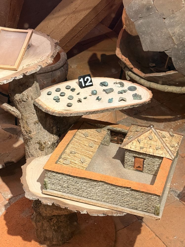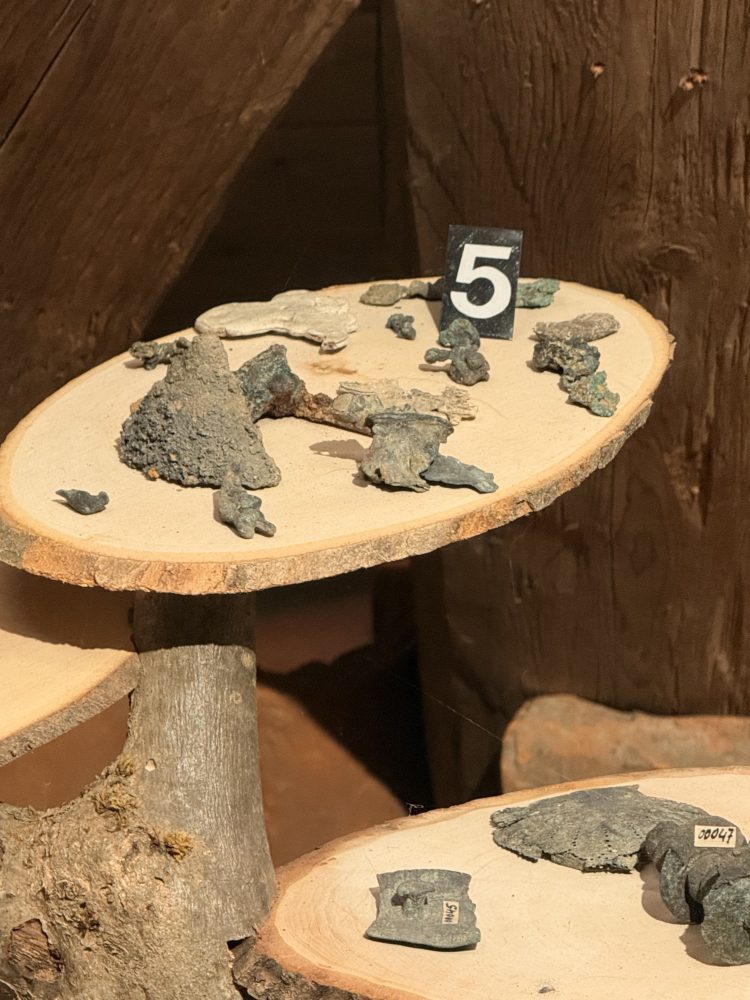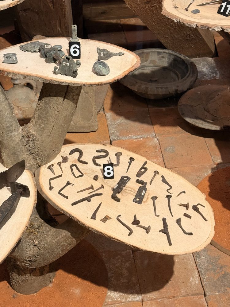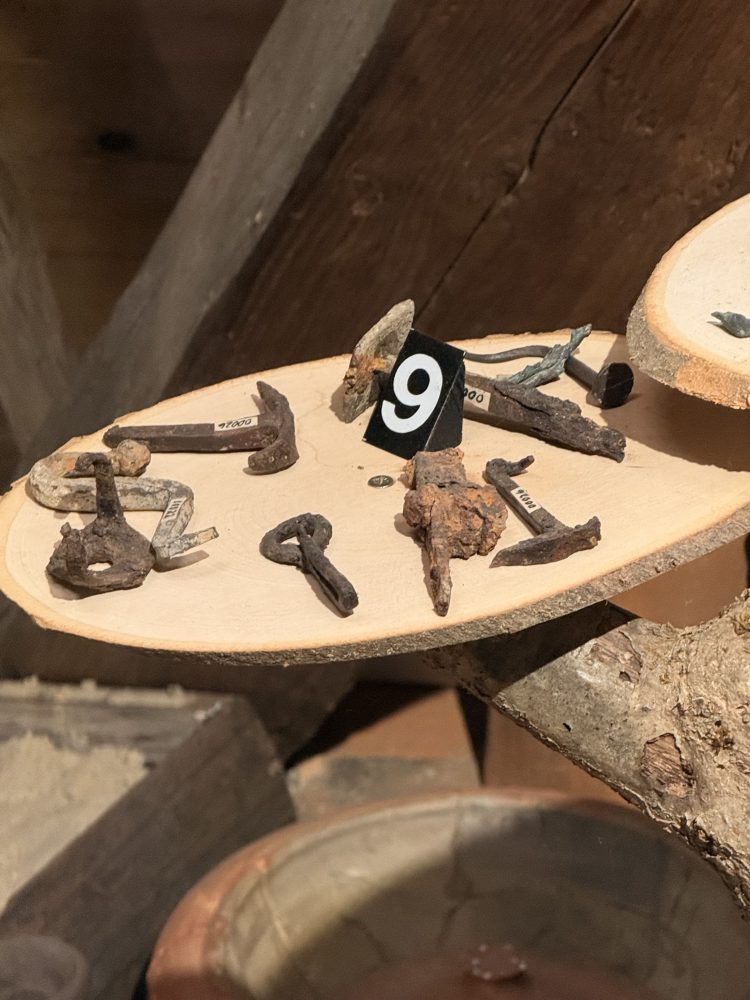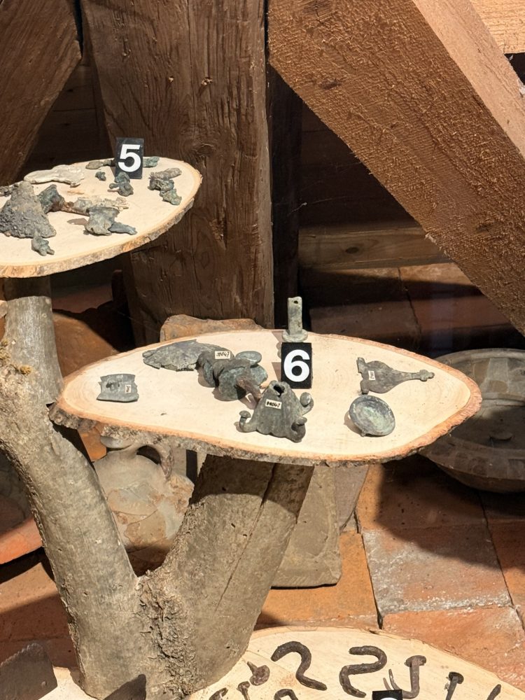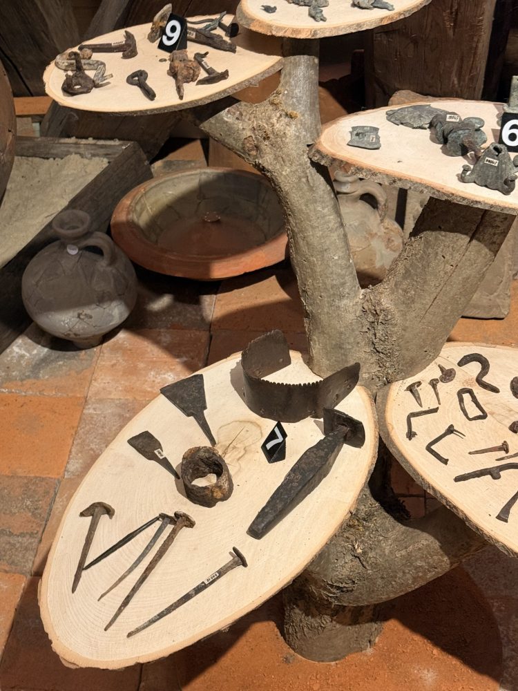 Die Funde umfassen zahlreiche Keramikstücke, darunter Terra Sigillata und Gebrauchskeramik, sowie verschiedene Metallgegenstände wie Werkzeuge, Schlüssel und eine Axt. Auch Bronzefunde und Tierknochenfragmente wurden entdeckt. Hohlziegel und Wandverputzstücke wurden ebenfalls gefunden. Einige Vorratsreste wie Hirsekörner, Weizen und Erbsen wurden ebenfalls geborgen.