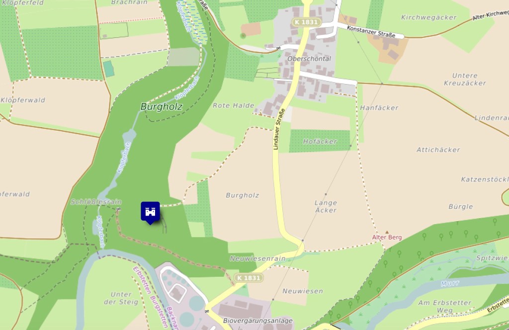 - Die Burg stand auf einem felsigen und bewaldeten Mündungssporn des Klöpferbachs