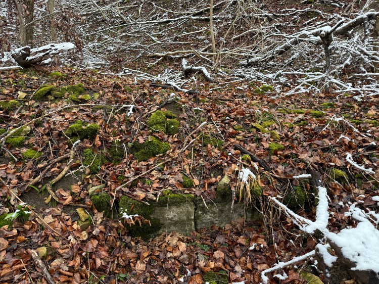 - Es gibt Berichte über einen runden Schacht, möglicherweise die Reste eines Brunnens