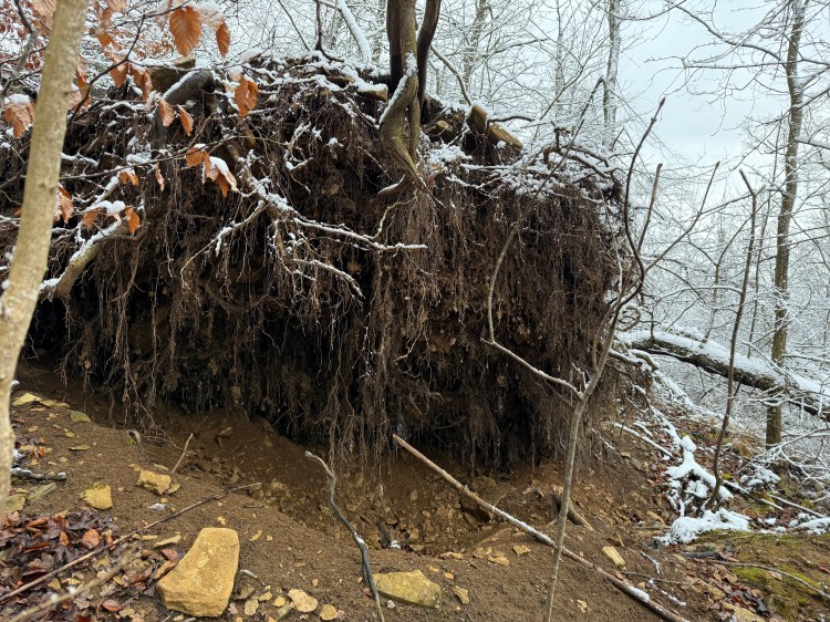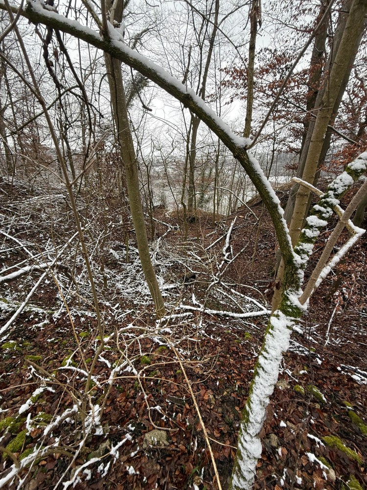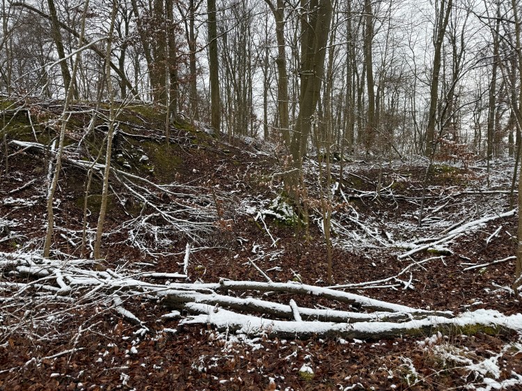 Leider wird auch hier in die Substanz der Burg durch Menschen eingegriffen. Diverse gefällte Bäume, Bauschutt und ein Weg führt durch die Burg. Sehr schade das diese nicht geschützt wird.
