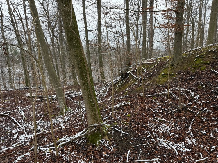 - Noch heute sind ein aufgeschütteter Wall und ein tiefer Halsgraben erkennbar