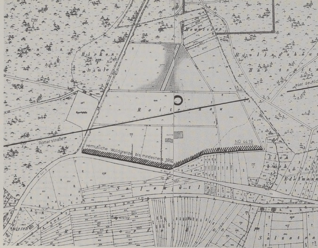 1968 wurden Drainagearbeiten in der Flur „Reuterhau“ durchgeführt, bei denen die Bauern auf den befestigten Stichweg von der Römerstraße zum nördlich liegenden Gutshof stießen. Diese Erkenntnisse sowie die unklaren Überlieferungen führten dazu, dass die genaue Lage des Gehöfts noch nicht eindeutig bestimmt werden konnte. Zudem befanden sich in 100m Entfernung frühzeitliche Grabhügel.