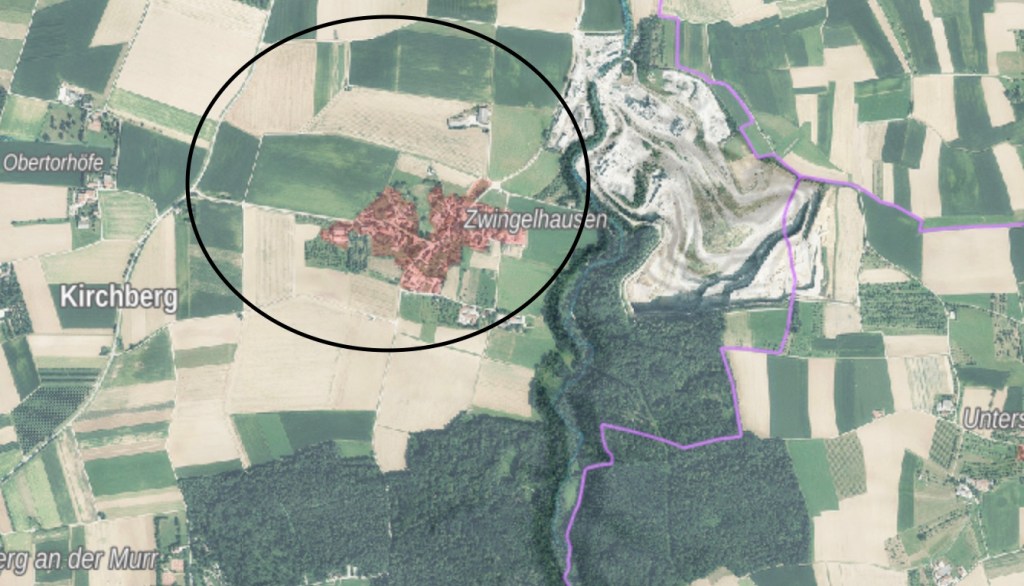Am 17. April 1945 flog ein schwer beschädigter viermotoriger Bomber aus Richtung Bürg in Tiefflug über Zwingelhausen. Zwei seiner Motoren standen in Flammen und hinterließen eine dichte Rauchfahne. Während des Flugs kam es zu einer Explosion in der Luft, gefolgt von einem lauten Zischen. Kurz darauf wurden aus Richtung Kirchberg Detonationen und Rauchwolken wahrgenommen.
