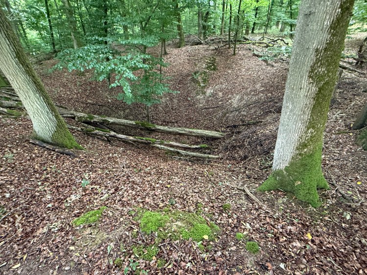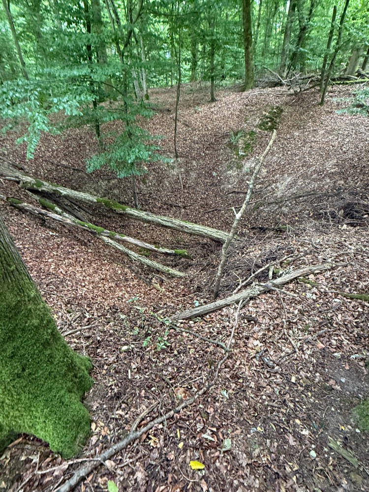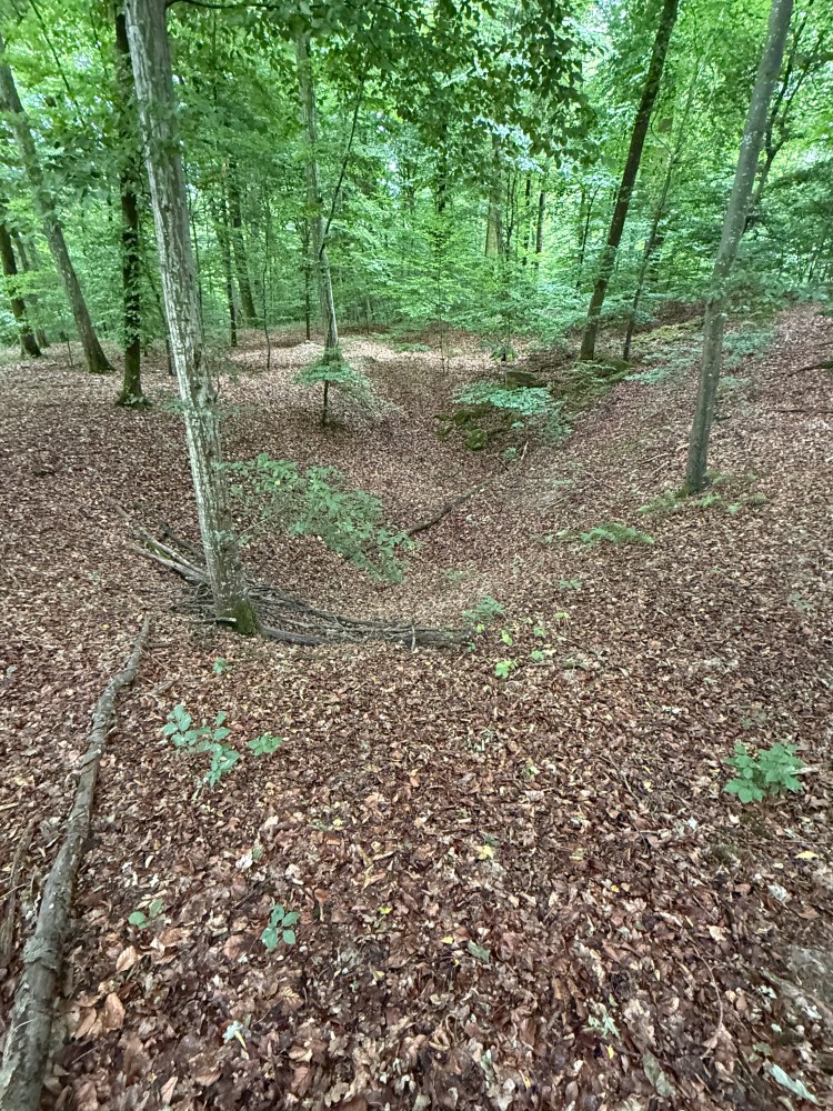 Noch heute erkennt man auf Schummerungskarten mehr als 40 Löcher. Diese sind auch im Waldboden noch sichtbar, wo sich zum Teil 4 bis 5 Meter tiefe Krater befinden. Nimmt man an, dass die Bombenkrater der Flugroute folgen, muss das Flugzeug bereits stark beschädigt gewesen sein. Es erscheint kaum vorstellbar, dass es noch wesentlich weiter fliegen konnte.