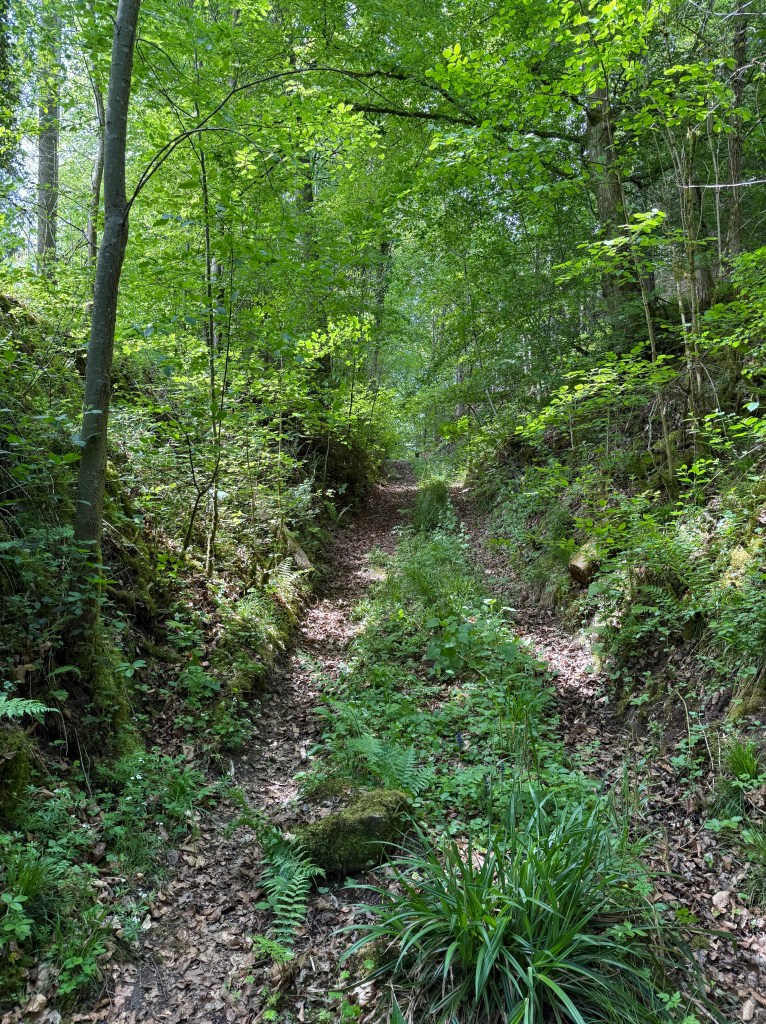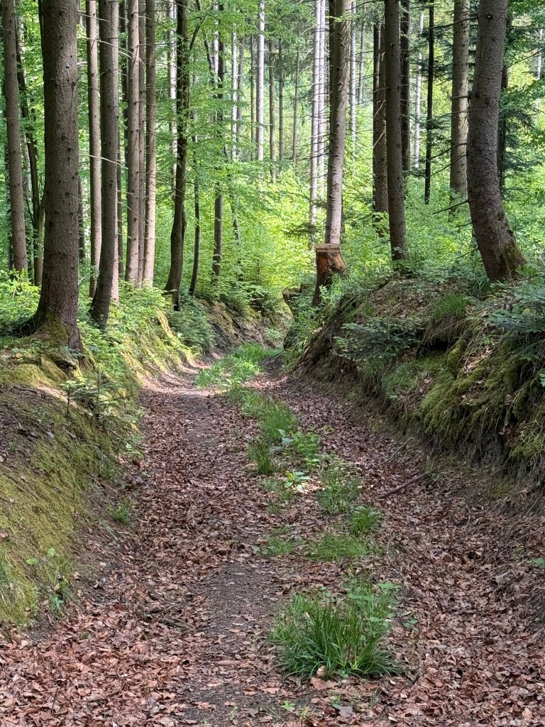 Zur Burg führen auch mehrere alte Hohlwege die zum Teil heute noch als Rückegasse oder Wirtschaftswege genutzt werden.