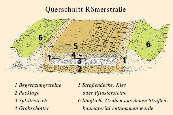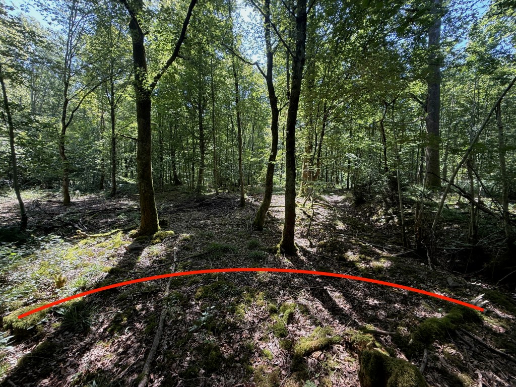 Im Waldgebiet „Größe“ lässt sich der Verlauf der römischen Straße stellenweise noch gut erkennen.