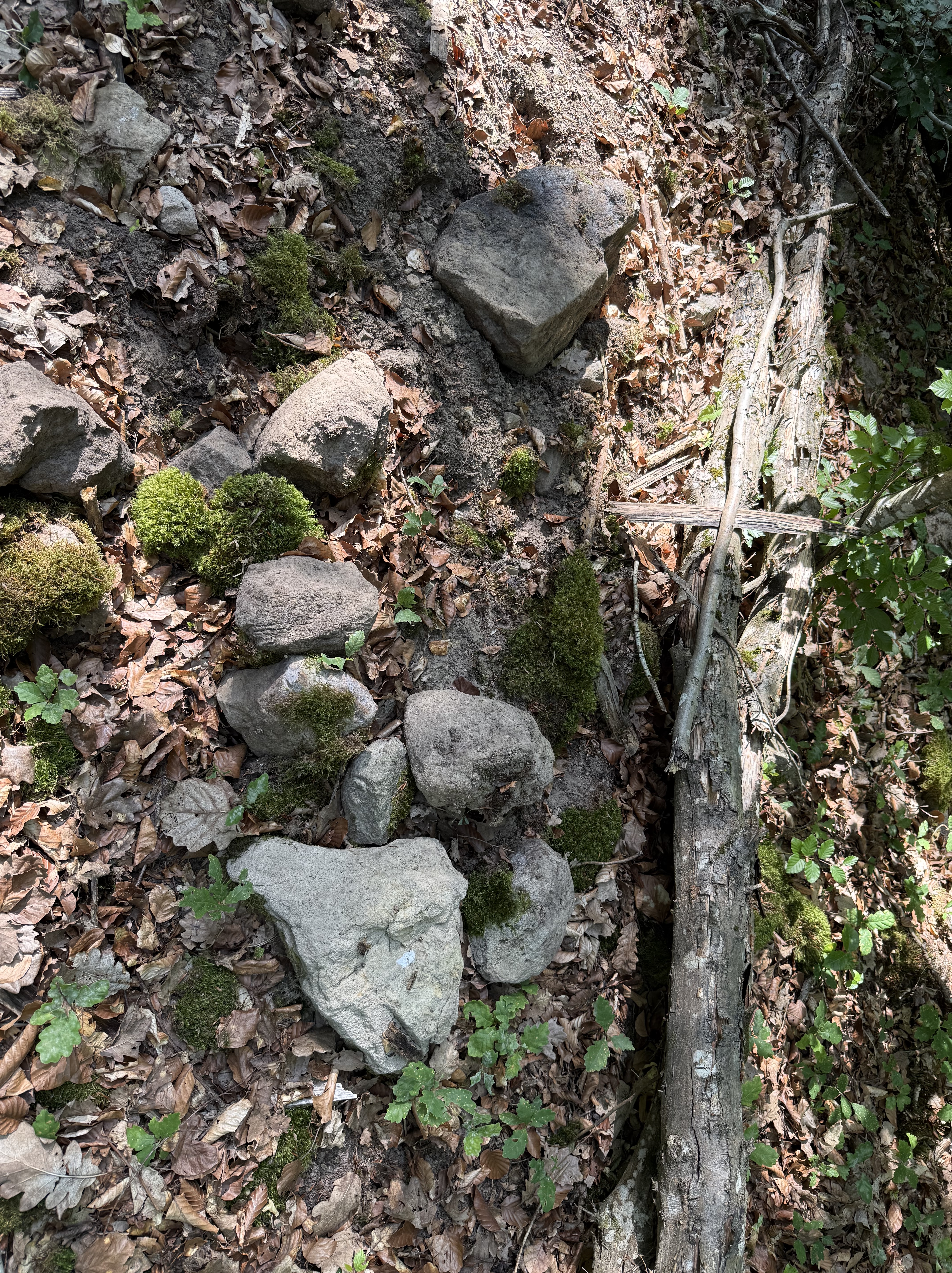 Am Punkt des ersten Richtungswechsels nach Osten befinden sich diese Steine die wohl noch sehr original liegen.