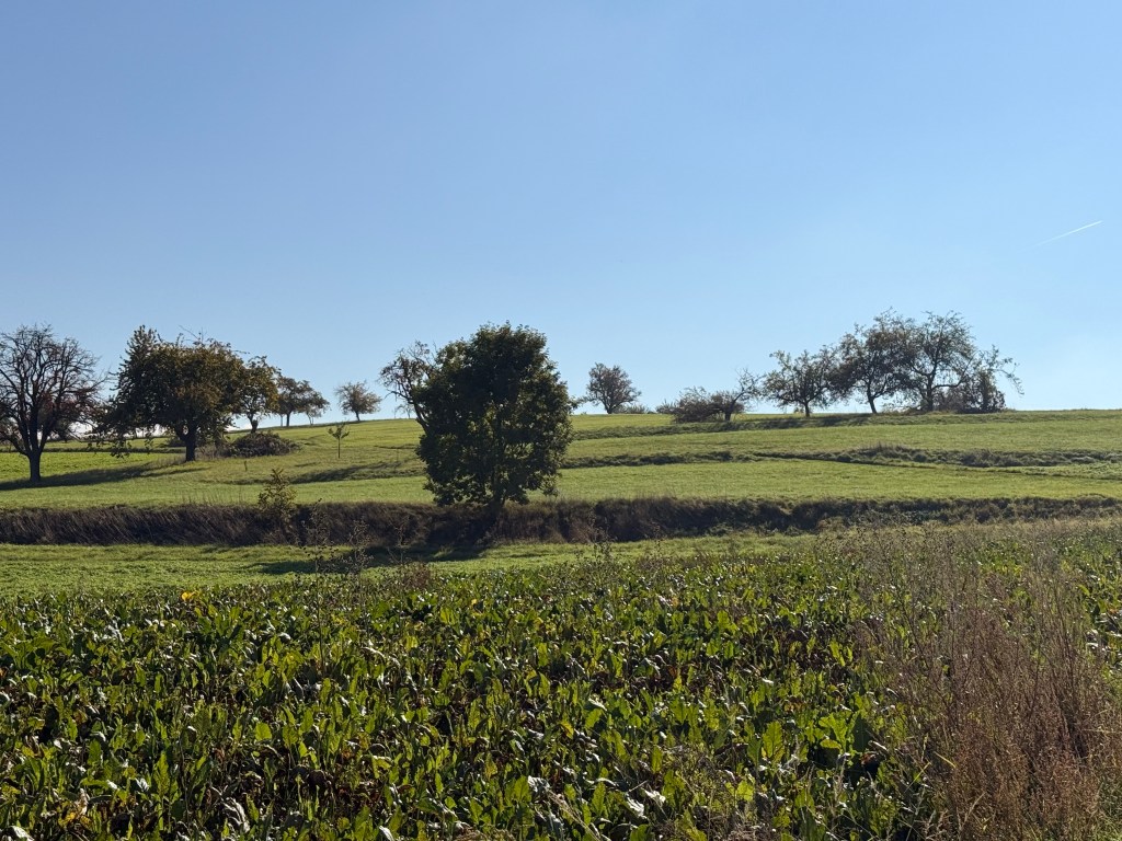 In der Mitte des Feldes zeichnet sich eine deutliche Erhöhung ab, die sich ungefähr bis zur ersten Stufe der Terrassierung auf der benachbarten Baumwiese fortsetzt.