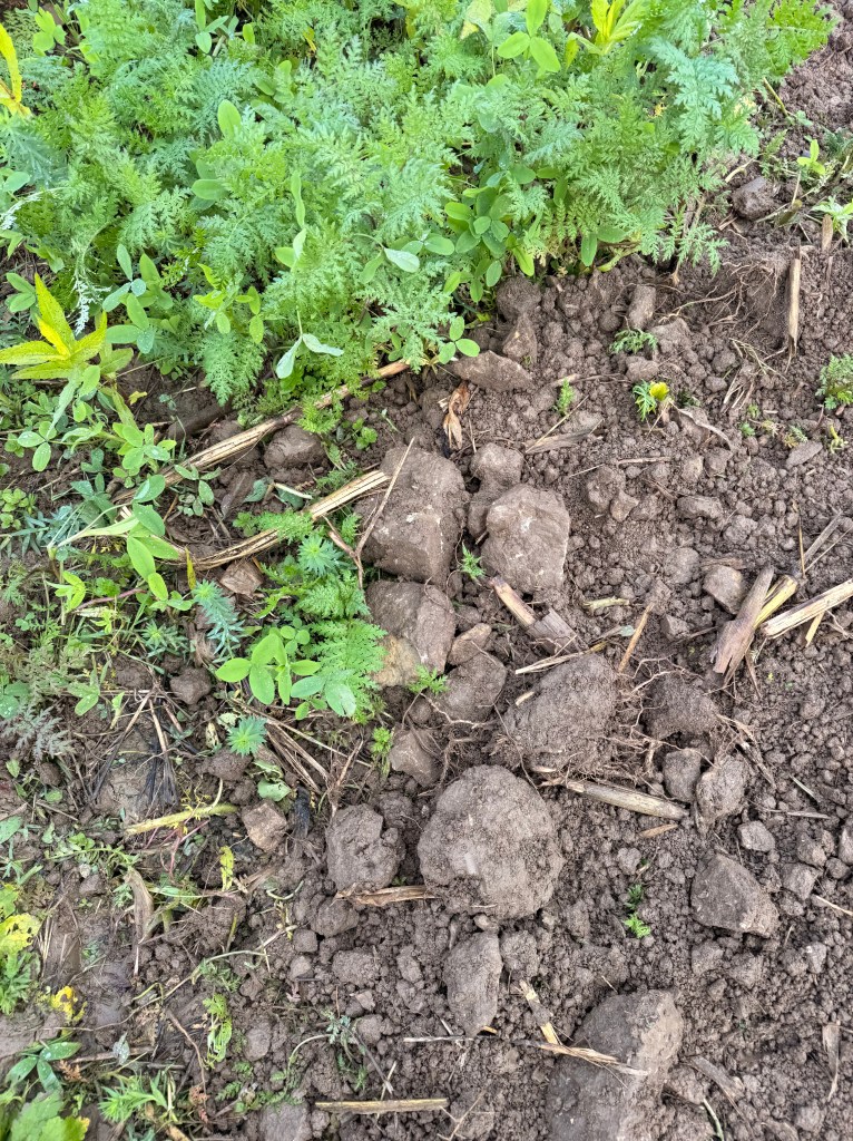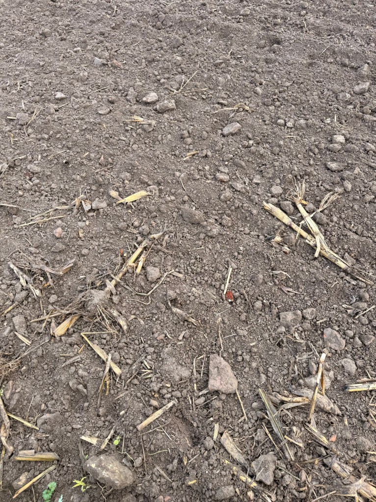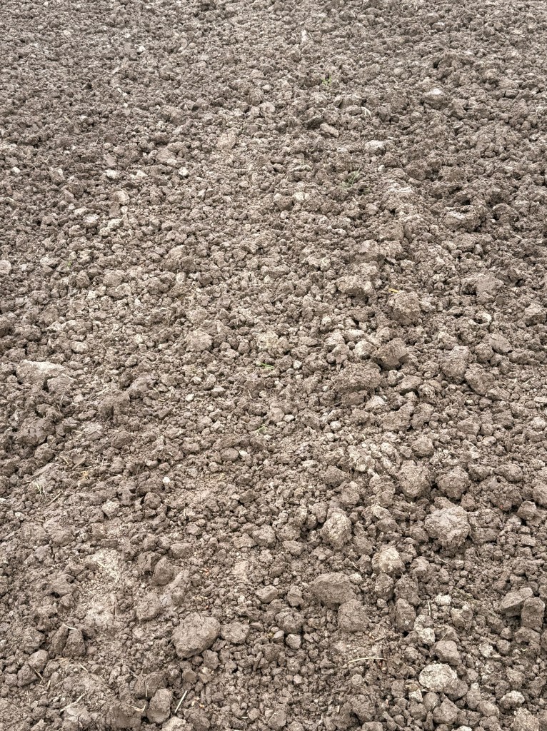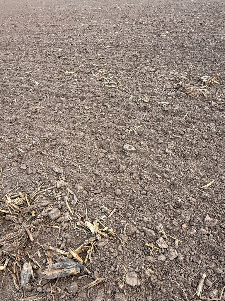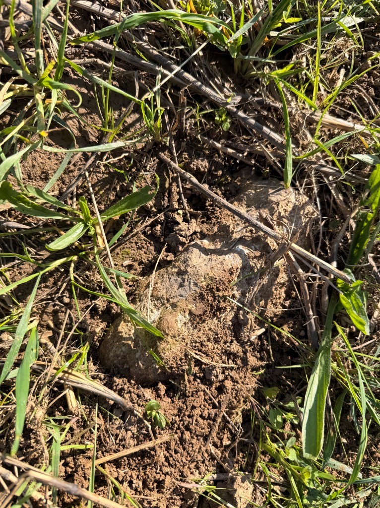 Weiter östlich erstreckt sich ein Feld, auf dem ich zahlreiche Steine sowie eine beachtliche Menge Tonscherben entdecken konnte. Besonders auffällig waren eckige Fragmente, aber auch einige gebogene Stücke waren darunter. Die Funde konzentrieren sich auf einen eher kleinen Bereich des Feldes. Leider war eine weitergehende Untersuchung bislang nicht möglich, da das Feld derzeit noch mit Mais bepflanzt ist.