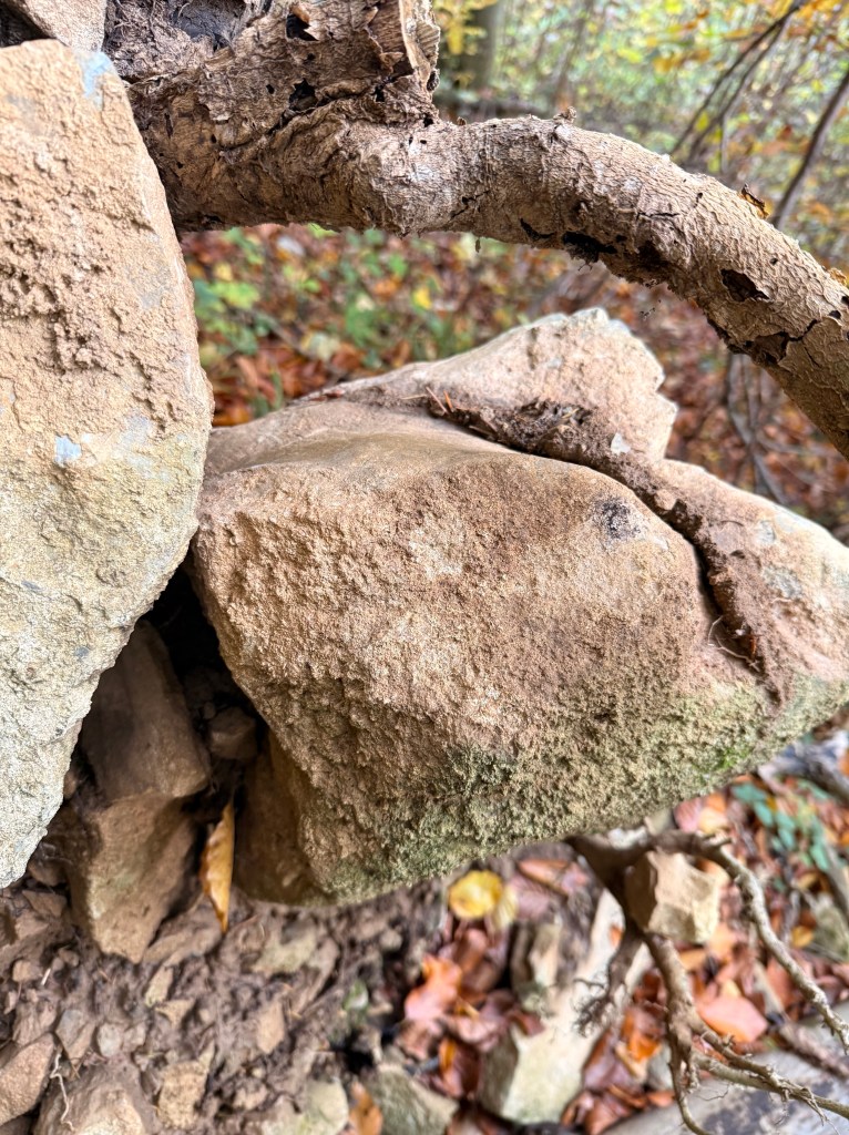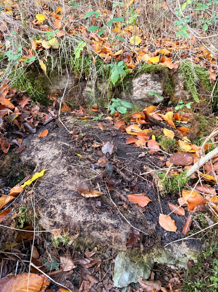 Auch größere Ansammlungen von Steinen fallen ins Auge, manche davon wirken wie aufgeschichtete Mauerreste. Sie finden sich nicht nur in unmittelbarer Nähe der Burgstelle, sondern auch weiter entfernt im Gelände.