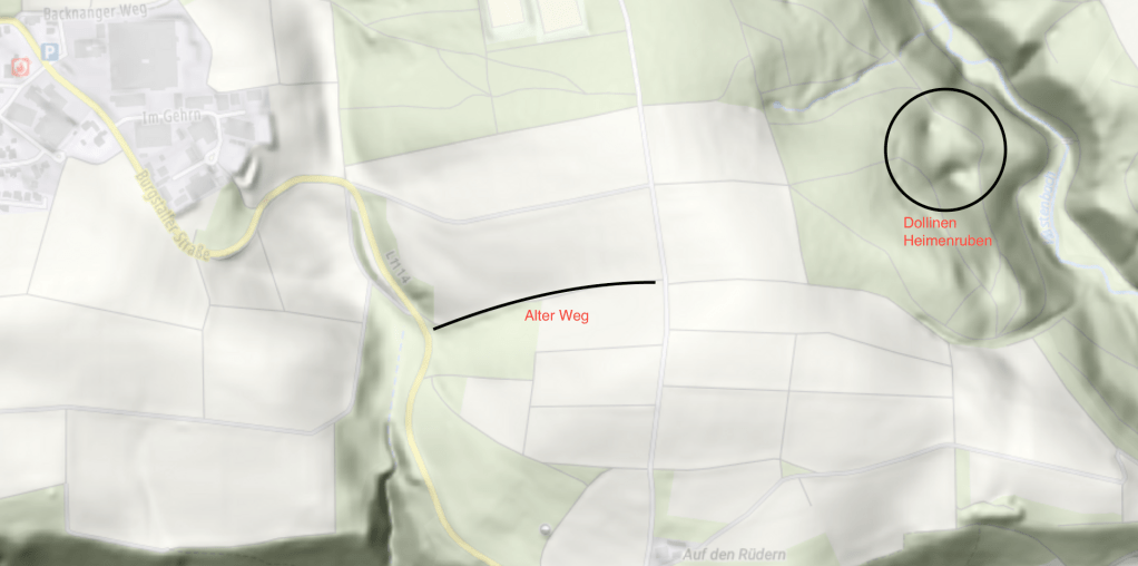 Ein alter Weg führt von Kirchberg in die grobe Richtung der Heimengruben. Vermutlich war er früher Teil einer Verbindung nach Backnang. Heute ist der Verlauf nur noch abschnittsweise erkennbar. Am Weg steht ein alter Grenzstein.