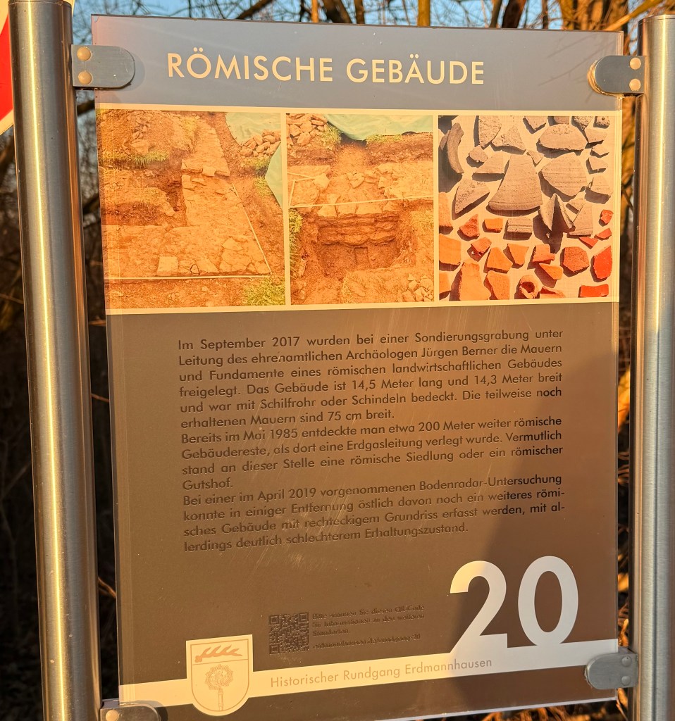 Bereits im Mai 1985 waren rund 200 Meter weiter südlich römische Baureste entdeckt worden, als dort eine Erdgasleitung verlegt wurde. Die Funde deuten darauf hin, dass sich an dieser Stelle einst eine römische Siedlung oder ein Gutshof befand.
