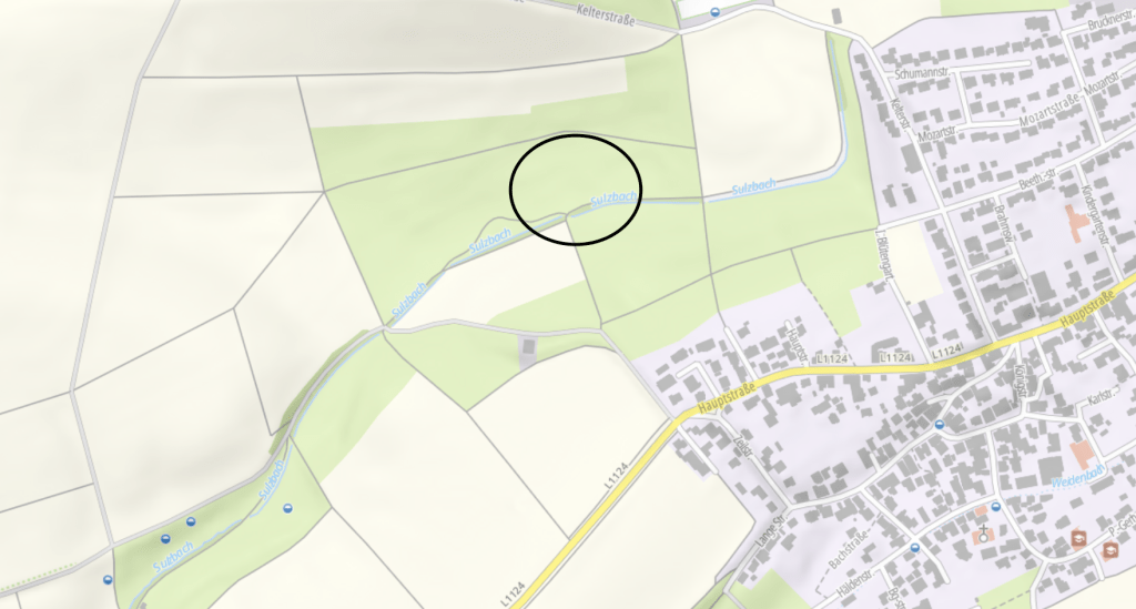 Nimmt man an, dass die Gegend bereits zur Zeit der römischen Besiedlung ähnlich feucht und sumpfig war, wäre ein Gebäude vermutlich etwas höher gelegen gewesen. Dafür kämen sowohl der Nord- als auch der Südhang infrage. Geht man jedoch von den bekannten Erfahrungswerten aus, nach denen römische Gutshöfe bevorzugt an Südhängen errichtet wurden, müsste der Standort eher auf halber Höhe zwischen dem Bachlauf und den heutigen Weinbergen vermutet werden. Auf offenen Äckern ist allerdings nichts zu finden. Auch die reichlichen Wiesen geben keine Anhaltspunkte.