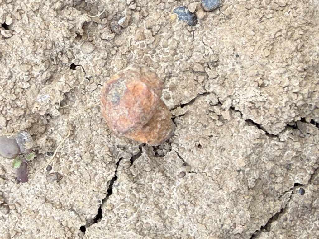 Zu den überlieferten Funden gehören Keramik, Tonfragmente und verschiedene Steine, die auf eine landwirtschaftlich geprägte römische Siedlung schließen lassen. Man geht von bis zu drei kleineren Gebäuden aus, die vermutlich als Wohn-, Wirtschafts- und Lagerbereiche dienten. Vor Ort ist heute jedoch nur noch wenig sichtbar. Die Steine scheinen größtenteils aufgelesen oder abtransportiert worden zu sein, und das Gelände ist von modernen Müll durchsetzt. Dennoch finden sich im Acker immer wieder kleine Keramik- und Tonfragmente, die sich aufgrund ihrer geringen Größe kaum eindeutig zuordnen lassen. Ich konnte nur einen Nagel und einen Henkel eines kleinen Gefäßes finden.